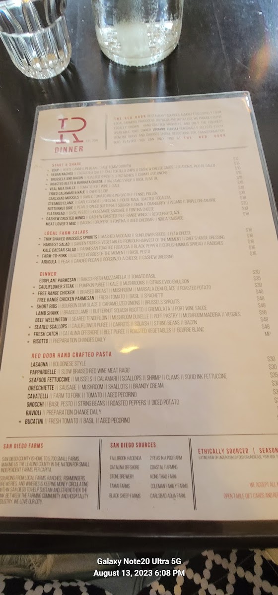 Welcome to The Red Door, a charming Italian restaurant nestled in the heart of San Diego’s Mission Hills neighborhood. Located at 741 W Washington St, this culinary gem invites you to experience authentic Italian cuisine in a cozy, intimate setting, making it an ideal spot for both casual dining and memorable date nights.